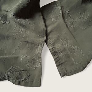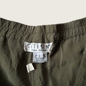 Citron Santa Monica 100% Silk Olive Green Pants Women Relaxed Embroidered Large