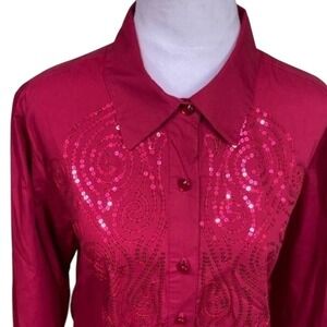 New Mackie Wearable Art Sequin Embellished Button Down Shirt Red Christmas Med.
