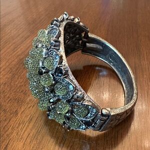 ✨ Glamorous statement bracelet featuring an intricate floral-inspired design adorned with pavé-set champagne crystals and dark accent stones. Finished in a rich gunmetal silver tone, this bracelet delivers dramatic sparkle with a refined, couture aesthetic.