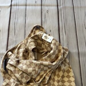Wilo the Label Brown White Wave Print Checkered Workout Set XS Activewear
