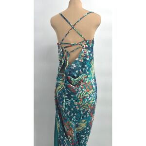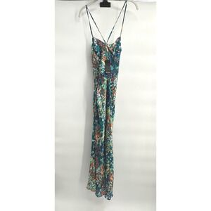 Keywords: Nasty Gal, maxi dress, abstract print, lace up back, sleeveless, spaghetti strap, side slit, bohemian, party dress, summer dress, occasion dress, size 8, blue dress, multi color dress, new with tags