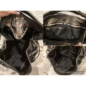 Burberry Hobo Bag Metallic Leather Trim Nylon Shoulder Bag Designer Purse