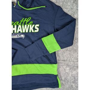 Show your support for the Seattle Seahawks with this stylish and comfortable women's sweatshirt. The blue and neon green colors are perfect for any fan of the National Football League (NFL). Made for football enthusiasts, this sweatshirt is a must-have for any Seattle Seahawks supporter. This sweatshirt is available in size small and is designed specifically for women. It features the team's logo prominently on the front, making it a great addition to any fan's collection. Get ready for game day or just show off your team spirit with this NFL Seattle Seahawks women's sweatshirt.