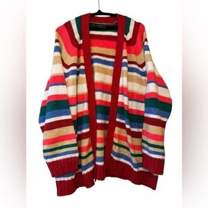 Wrap up in cozy knit and classic stripes with this versatile cardi -- can be worn with laid-back jeans or polished pants, depending on your plans.