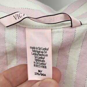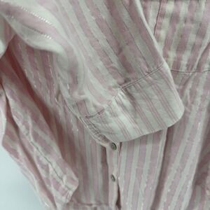 Keywords: Victoria's Secret, Pajama Top, Sleep Shirt, Pink Striped, White Striped, Metallic Thread, Button Down, Womens Sleepwear, Loungewear, Medium, VS Pajamas, Casual Top, Night Shirt