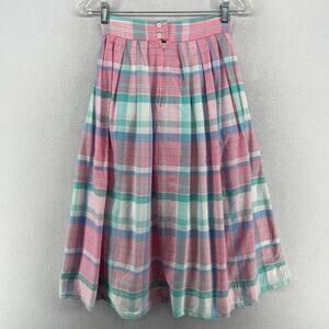 WOOLRICH Skirt S A-line 90s Madras Pastel Plaid Pleated Cotton Midi Pink VTG