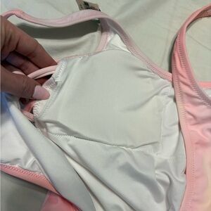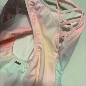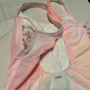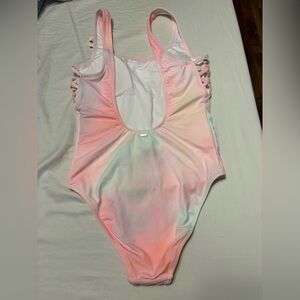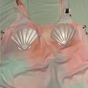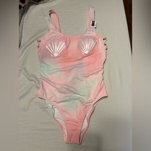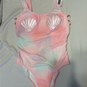 Stylish one piece swimsuit with shell design. Features pink and multi color hues. Brand New!