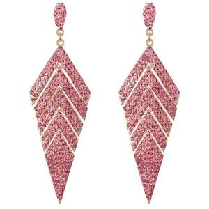 Yellow Gold Tone Banquet Vintage Style Rhombus Shaped Multi Layered Dangling Drop Post Back Chandelier Statement Earrings Embellished with Pink Sapphire Crystals