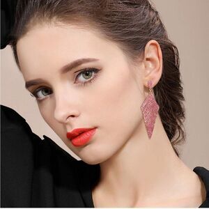 Yellow Gold with Pink Sapphire Crystal Rhombus Banquet Chandelier Post Earrings
