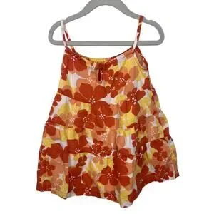 Janie and Jack Linen Sundress Orange Yellow Floral Tiered 18-24 Months