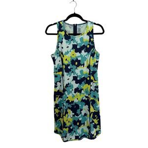 Title Nine Floral Athletic Dress Blue Green Yellow Sleeveless Zip Back Pockets
