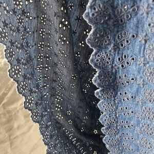 GAP DOEN Eyelet Tiered Midi Dress Chambray Blue Cotton Embroidered Boho Summer M