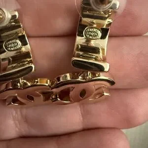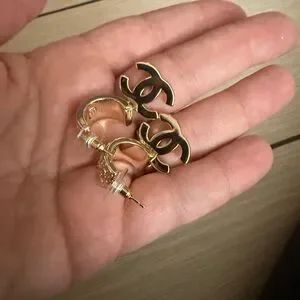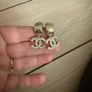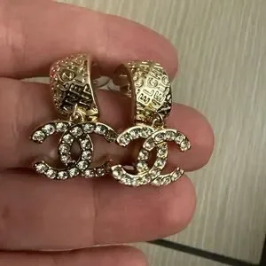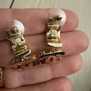Naw upcycled Chanel Gold with rhinestone Crystal Logo Earrings