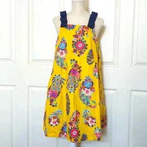 Anthropologie Maeve Sunniva Dress. Perfect summer dress. Ribbon detail on straps. Canary yellow A-line shift dress Bright yellow with contrasting pink blue floral print. Sleeveless with Fabric shoulder straps in Navy. A-Line silhouette. Hidden seam side pockets. Hidden Back zipper closure with hook & eye 100% cotton.