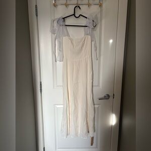 Reformation dress, ivory midi dress, smocked back dress, tie strap dress, summer midi, bridal shower dress, wedding dress, minimalist dress, sustainable fashion, NWT Reformation