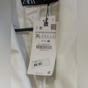 Chic cream blazer by Zara. Features a tailored fit and classic lapel. Ideal for professional or casual wear.