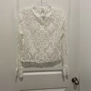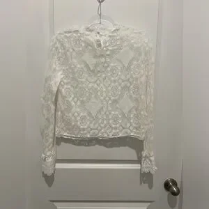 Never Worn Francesca Elegant White Lace Top. The intricate design adds sophistication to your wardrobe.