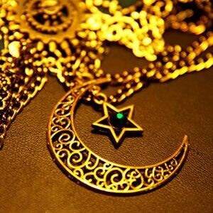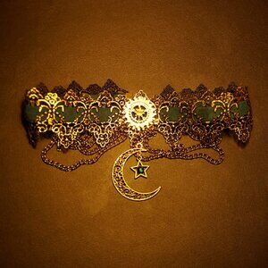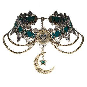 Steampunk Choker Necklace Vintage Bronze Gold Moon Pendant Elegant Gothic