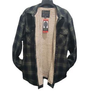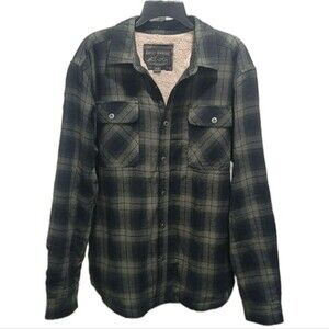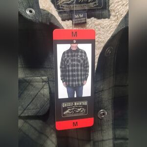 Grizzly Mountain Sherpa Lined Men's M Flannel Shirt Jacket Shacket Green Plaid