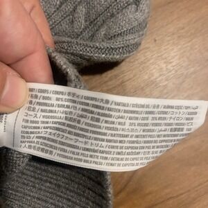 Hollister Faux Fur Trim Hooded Sweater Cable Knit Heather Grey Sz M NWT