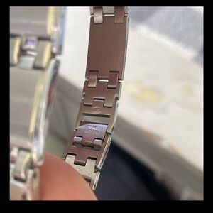 This elegant silver bracelet features a sophisticated design with interlocking links, offering a polished and refined look. Crafted with high-quality materials, it seamlessly combines style and durability, making it a perfect accessory for any occasion.