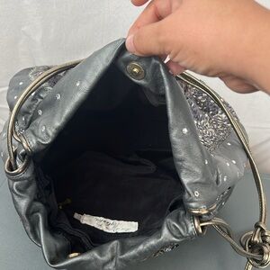 Rita Diana for Mylinka Gray and silver with crystals cinch leather purse bag