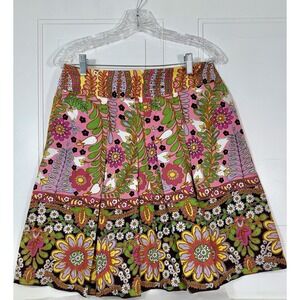 CABi Ashbury Floral Colorful High Rise A-Line Pleated Skirt Sz 4 Y2K Boho
