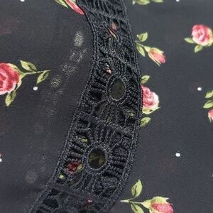 Lace detailing around the v-neck