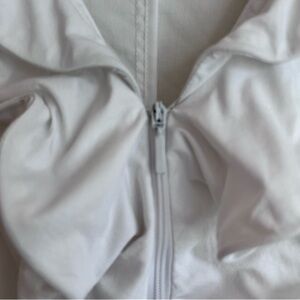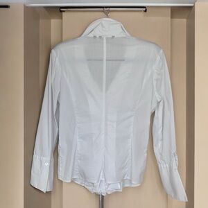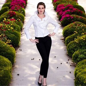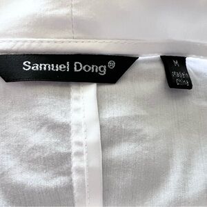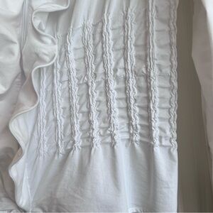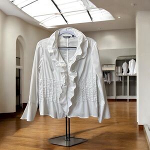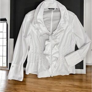 EUC- Samuel Dong- Dbl Zip Smocked Wire Neckline Front Ruffles White Top- M