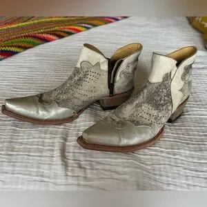 Old Gringo Silver and Cream Ankle Boots