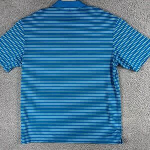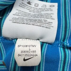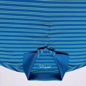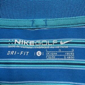 Nike Golf Polo Shirt Mens Large Blue Striped Dri-FIT Stretch Performance Swoosh