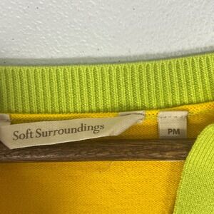 Soft Surroundings Floral Soft Knit Top Bird of Paradise V-Neck Sweater Yellow PM
