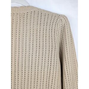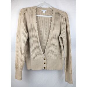 Charter Club Crochet Knit Cardigan Button Tan Beige V Neck L Preppy Coquette
