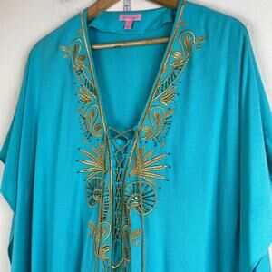 Lilly Pulitzer Chai Caftan Dress Size L/XL Seaside Aqua Cover Up
