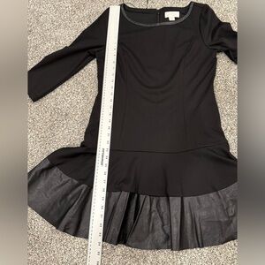 Chic black timeless versatile dress by Jessica Simpson featuring a stylish faux leather trim. Perfect for so many occasions events, parties, holiday, gatherings, semi formal.