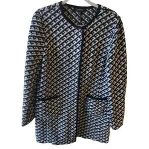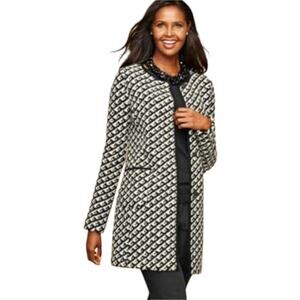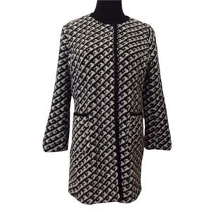 Beautiful Talbots women’s career black white wool blend tweed Jacket Coat size Lp EUC, MSRP $299. Fits with a range pants or skirts. Features long sleeves collarless jacket with front hidden snap closure, front slip pockets, no vent opening. Note measurements are +/-2 inches. Please see and enlarge pictures and review measurements for perfect fit. Beautiful jacket! Excellent Preowned condition.