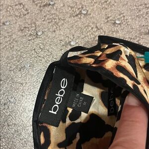 BEBÉ silk M Y2K Leopard Print Wrap Top with Black Accents