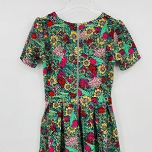 Lularoe Size Small Green & Pink Floral Fit & Flare Amelia Dress Short Sleeve