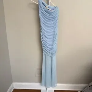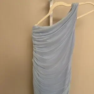 Step out in style with this elegant blue one-shoulder dress. Perfect for any occasion, this dress offers a sophisticated look with its sleek design.