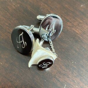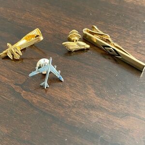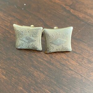 18 vintage pieces as shown, all in good condition. There are no markings (of sterling, etc) on the cufflinks or tie clips.