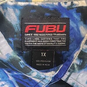Fubu Hawaiian Camp Shirt Mens 1X Button Up Blue All Over Graphic Print Skater