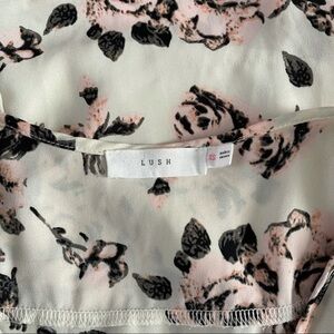 Look stylish this summer in this Lush Clothing pink and cream floral dress with ruffles and a sleeveless design. Features two ruffles on each side. The light and airy fabric provides enhanced comfort.