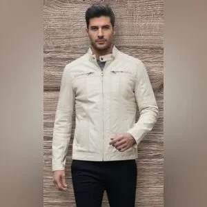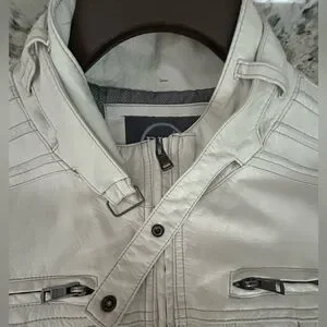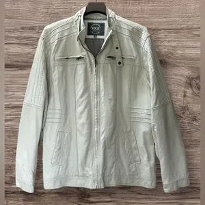 BKE Men’s Cream White Faux Leather Jacket Size XL
