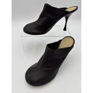 Authentic Bottega Veneta Dot Sock Mule Clog — Black Leather, EU 39 / US 9. Iconic designer mule with sculptural "toy" heel and sleek slip-on silhouette. Excellent, unworn condition — no flaws. See photos for details.