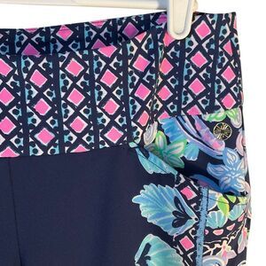 Lilly Pulitzer Corso Athletic Leggings. Size 4. Full length. High Tide Navy Tall Order Print. UPF 50. Navy with contrasting patterns at waist and down legs. Two front pockets, one back pocket. Gold lilly tag on left hip. Perfect condition. Flat lay 15” W, 36” L. 27” I, 9” R. #countryclub, preppy #gorpcore