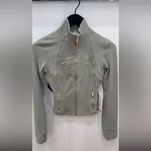 Grab it while you can!! This jacket is GORGEOUS!! Lululemon cropped define jacket in fog green with shiny gold zipper size 8 and is somehow even prettier in person. First picture reflects the true color. Bought from lululemon only selling as it’s too big for me 😭 you will not regret buying this jacket she is stunning! Let me know if you have any questions. Price is firm Thanks for your interest!