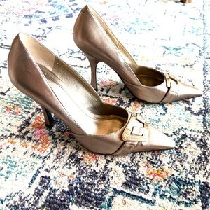 BCBGeneration Metallic Pointed Toe Heels with Buckle Detail – Elegant Pumps