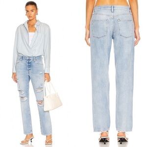 Frame Womens Le Slouch Natoma Light Wash Ripped Straight Leg Jeans Size 26