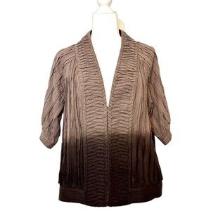 Chico's Size 2 (US L/12) Dip-Dyed Ombré Crinkle Open Front Jacket Boho Career