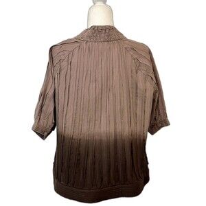 Elevate your wardrobe with this stunning Chico's Women's Jacket featuring a beautiful dip-dyed brown ombre design. The short sleeve jacket is made from high-quality cotton material with apliqué strips that add a touch of elegance. The hook and eye closure and button accents make it the perfect piece for any occasion, whether it's a casual day out or a formal business meeting.